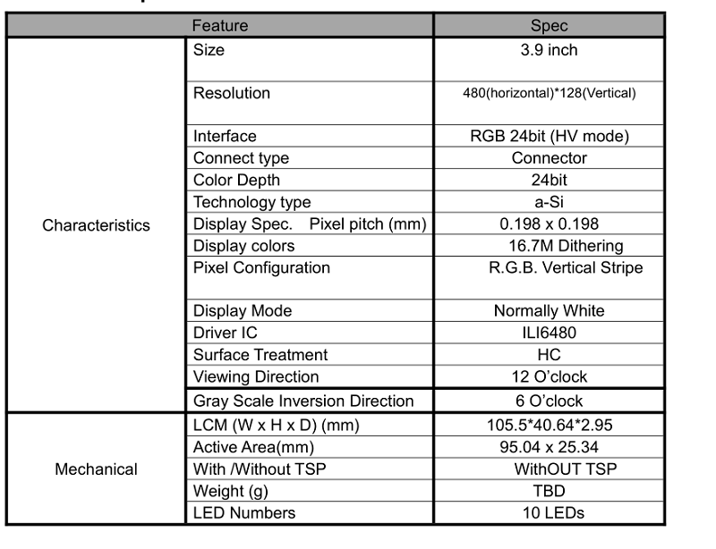 您的位置: 首頁  > 產(chǎn)品中心 >  定制液晶屏 >  3.9寸長條屏