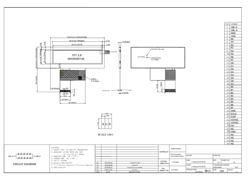 接口:  TTL  40PIN