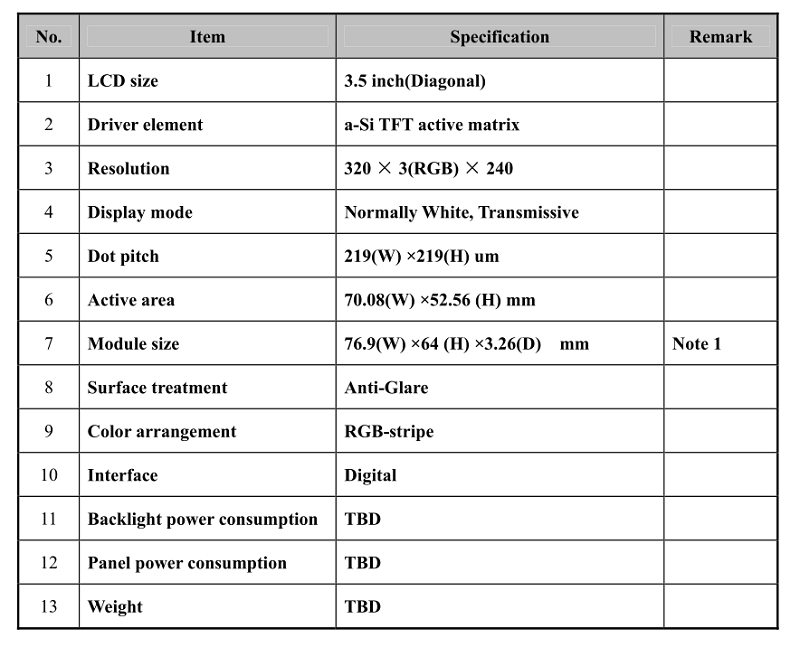 品名:  3.5寸定制電容觸摸顯示屏