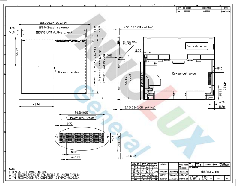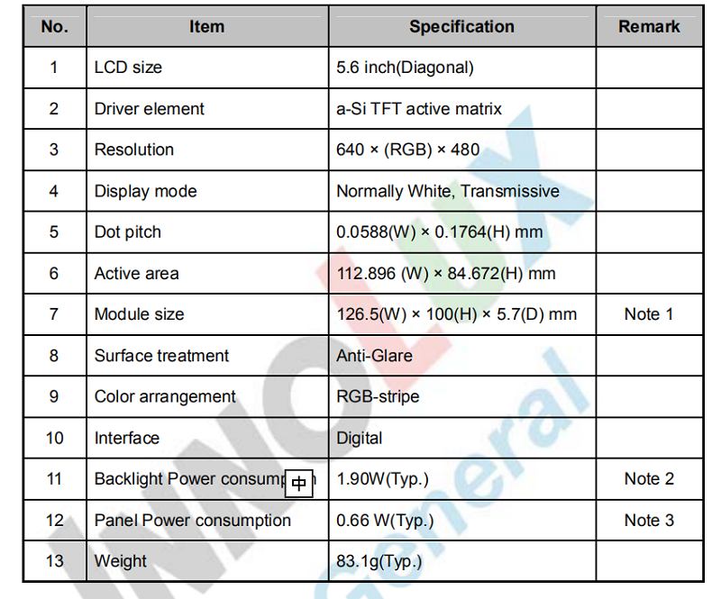 品名:  群創(chuàng)5.6寸4:3帶TCON原裝屏
