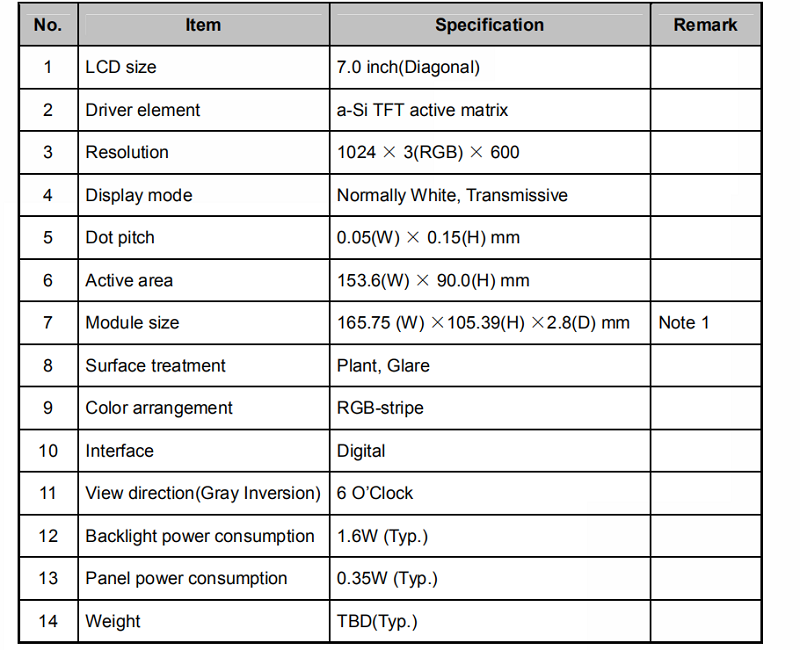 品名:7寸高清LVDS液晶屏